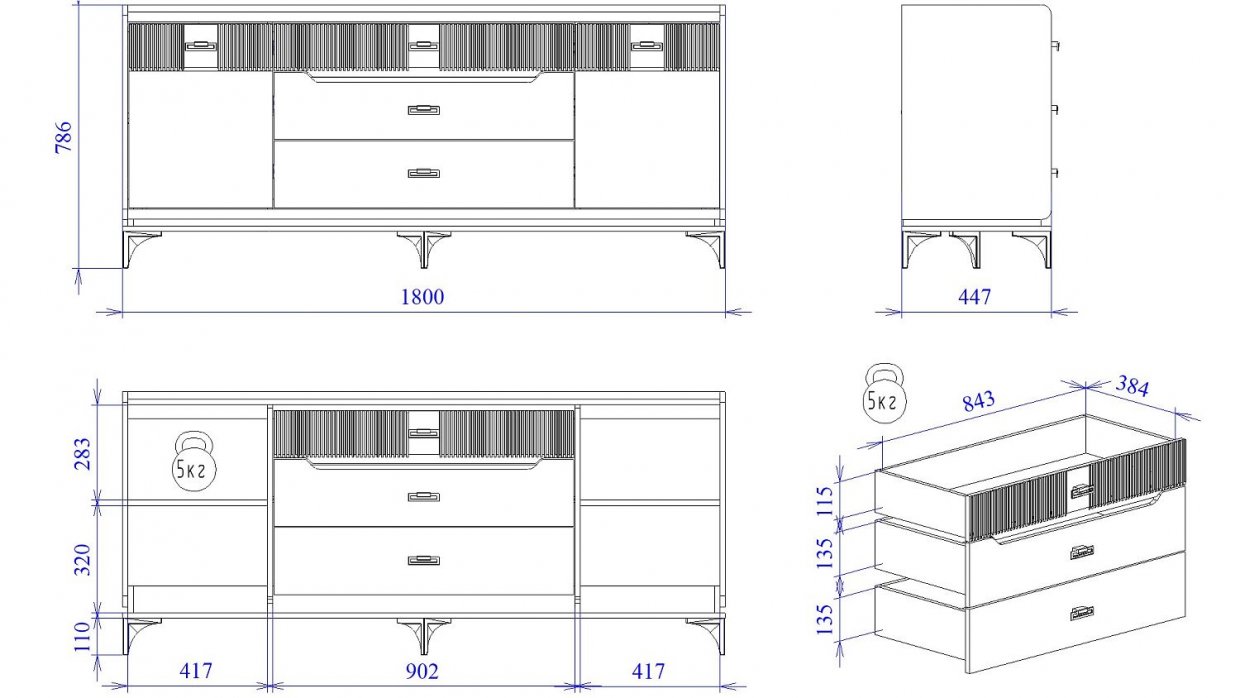 Широкий комод коллекции "Сиде" - сочетание изысканности, современных декоров и функционала.