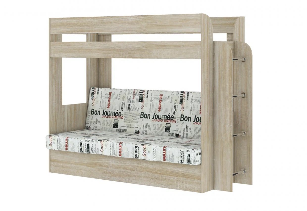 Кровать 2-х ярусная с диваном Карамель 75 сонома/газета