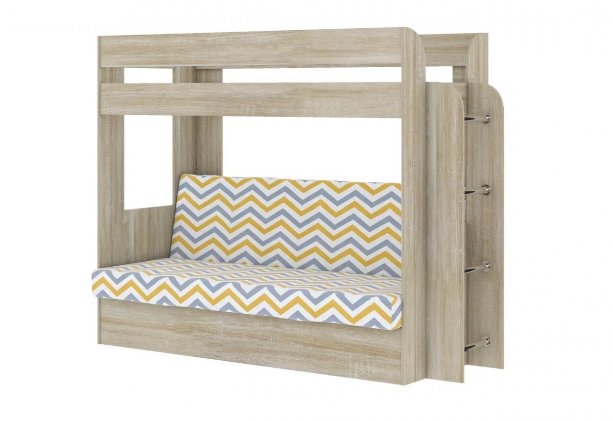Кровать 2-х ярусная с диваном Карамель 75 сонома (RIKKO YELLOW)