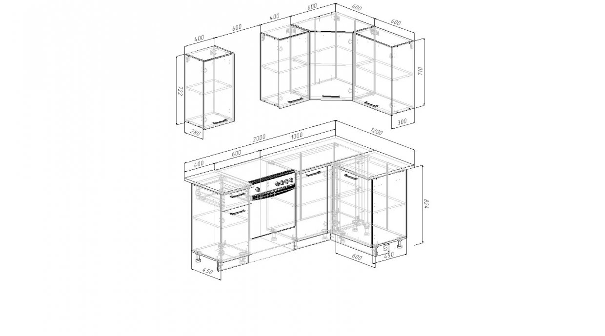 Артикул: A62023Кухонный гарнитур угловой Трансильвания 2000*1200 мм (Sanvut)