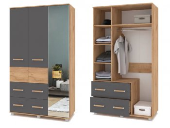 Шкаф 1200 мм Виора 3-х ств. с зеркалом и ящиками В33 (Модерн)