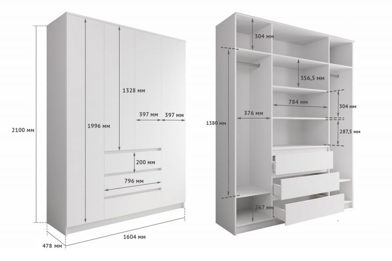 Шкаф распашной Мори 1600 мм (ДСВ)