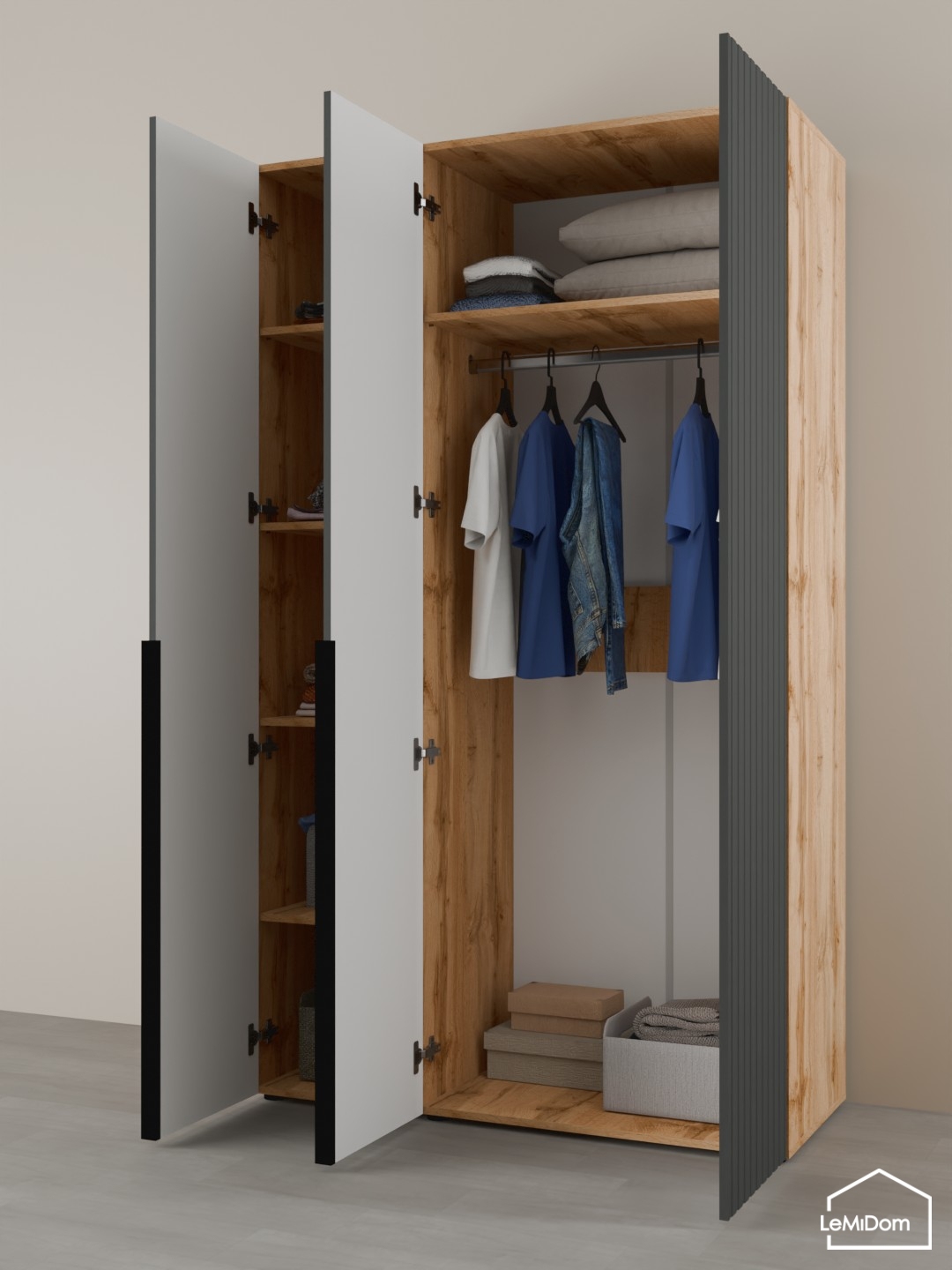Артикул: A64162Шкаф с антресолью 800 мм Linnea MHR-2A-4 2450х800х510 (Графит-М 11.1.25)