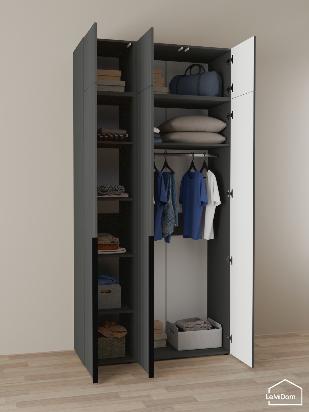 Шкаф с антресолью 1200 мм Linnea MHR-3A-1 2450х1200х510 (Графит-М 11.1.25)