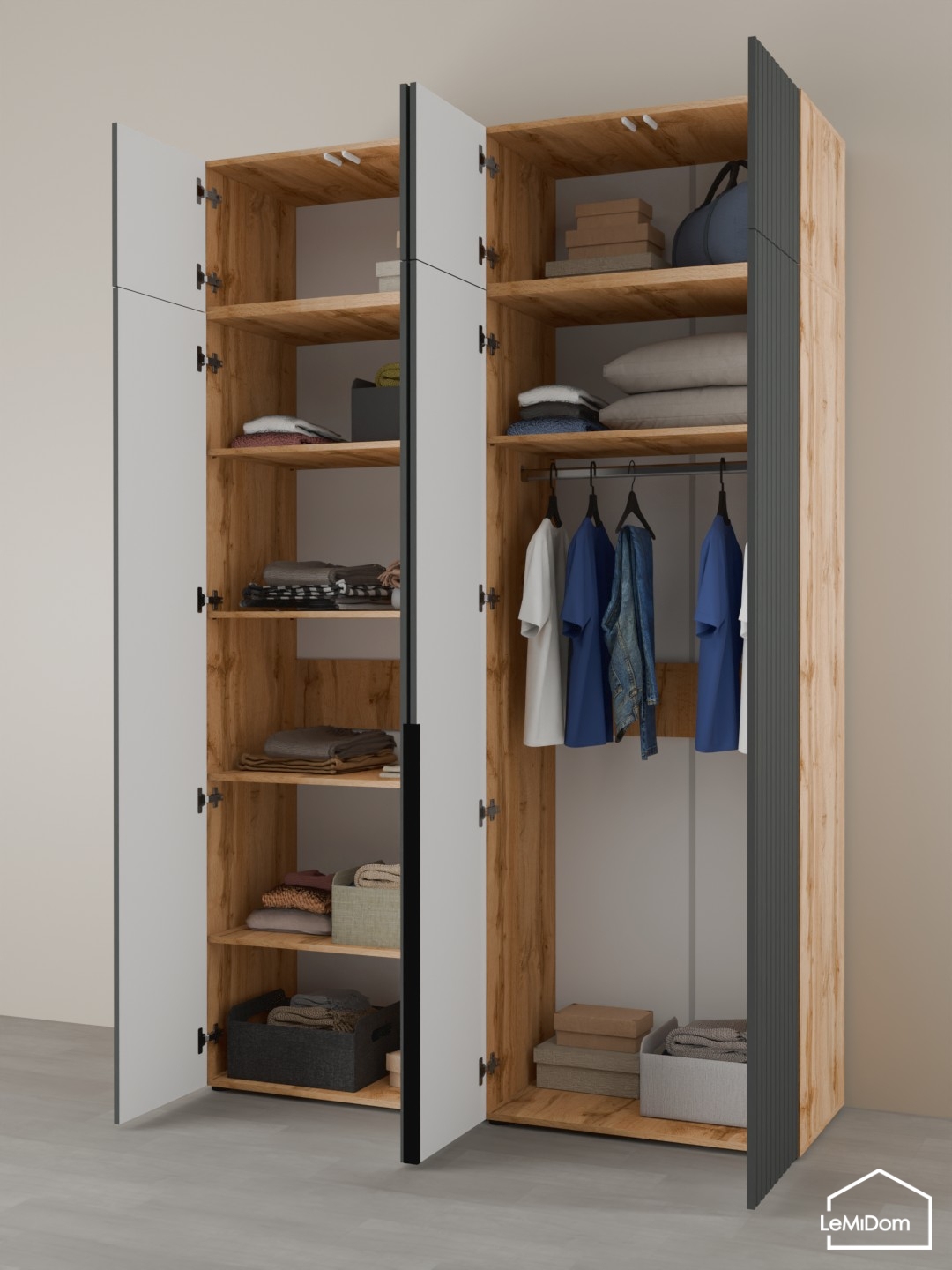 • У шкафа торцевая пластиковая ручка (100см), а у антресоли дверь без ручки (система открывания PUSH to OPEN).
